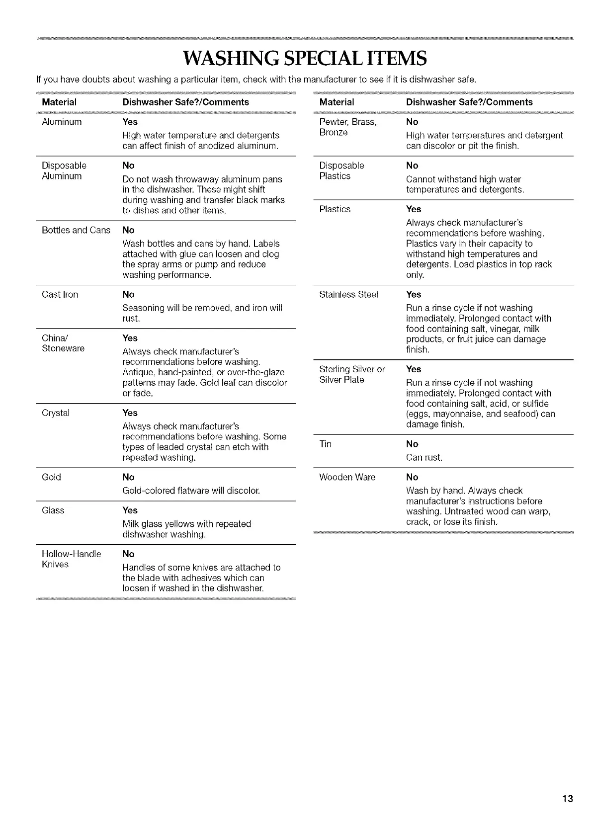 If you have doubts about washing a particular item, check with the manufacturer to see if it is dishwasher safe.