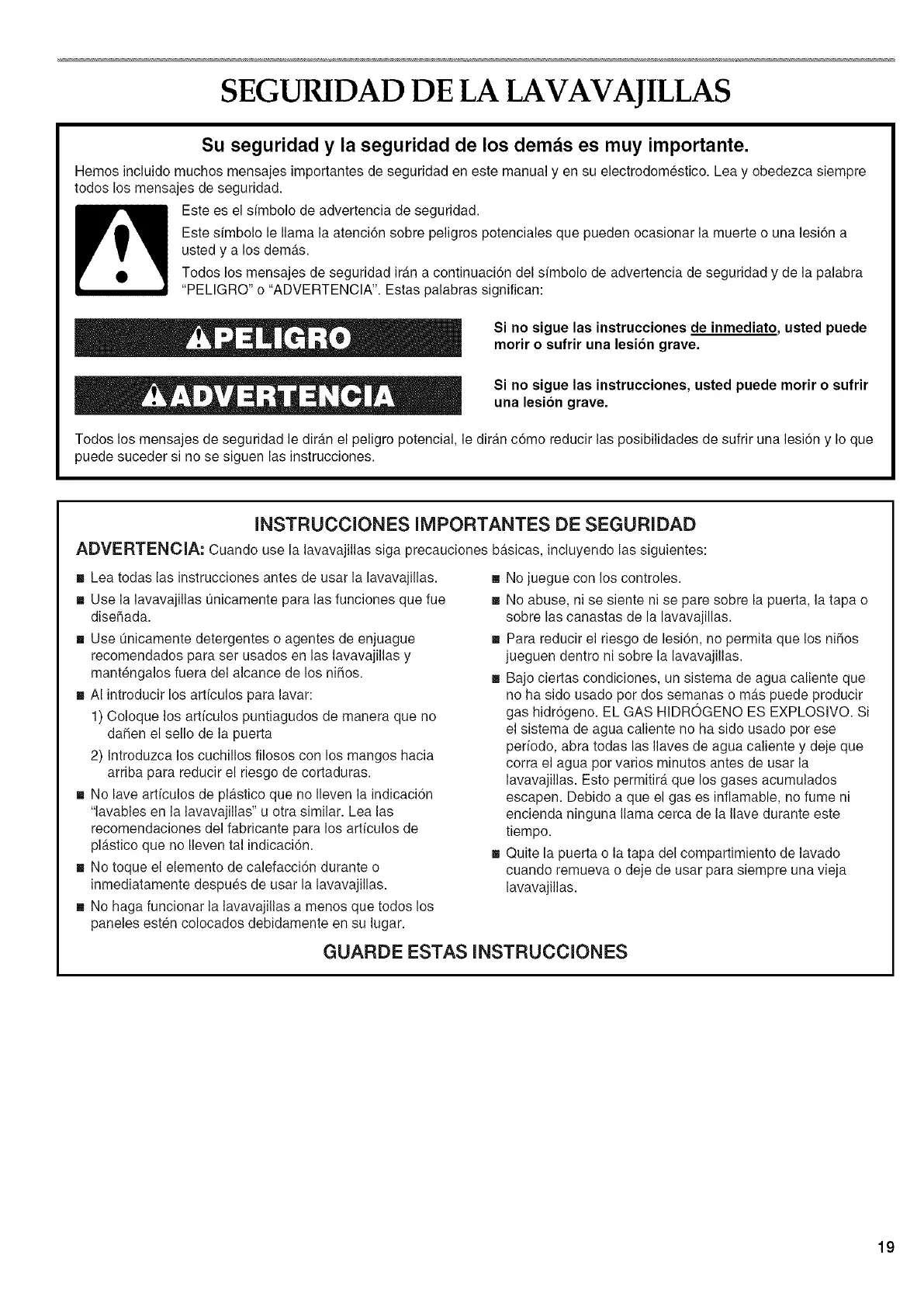 Todos los mensajes de seguridad irAn a continuacidn del simbolo de advertencia de seguridad y de la palabra