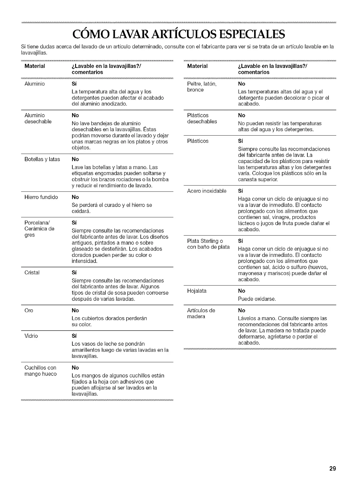 Si tiene dudas acerca del lavado de un articulo determinado, consulte con el fabricante para ver si se trata de un artfculo lavable en la