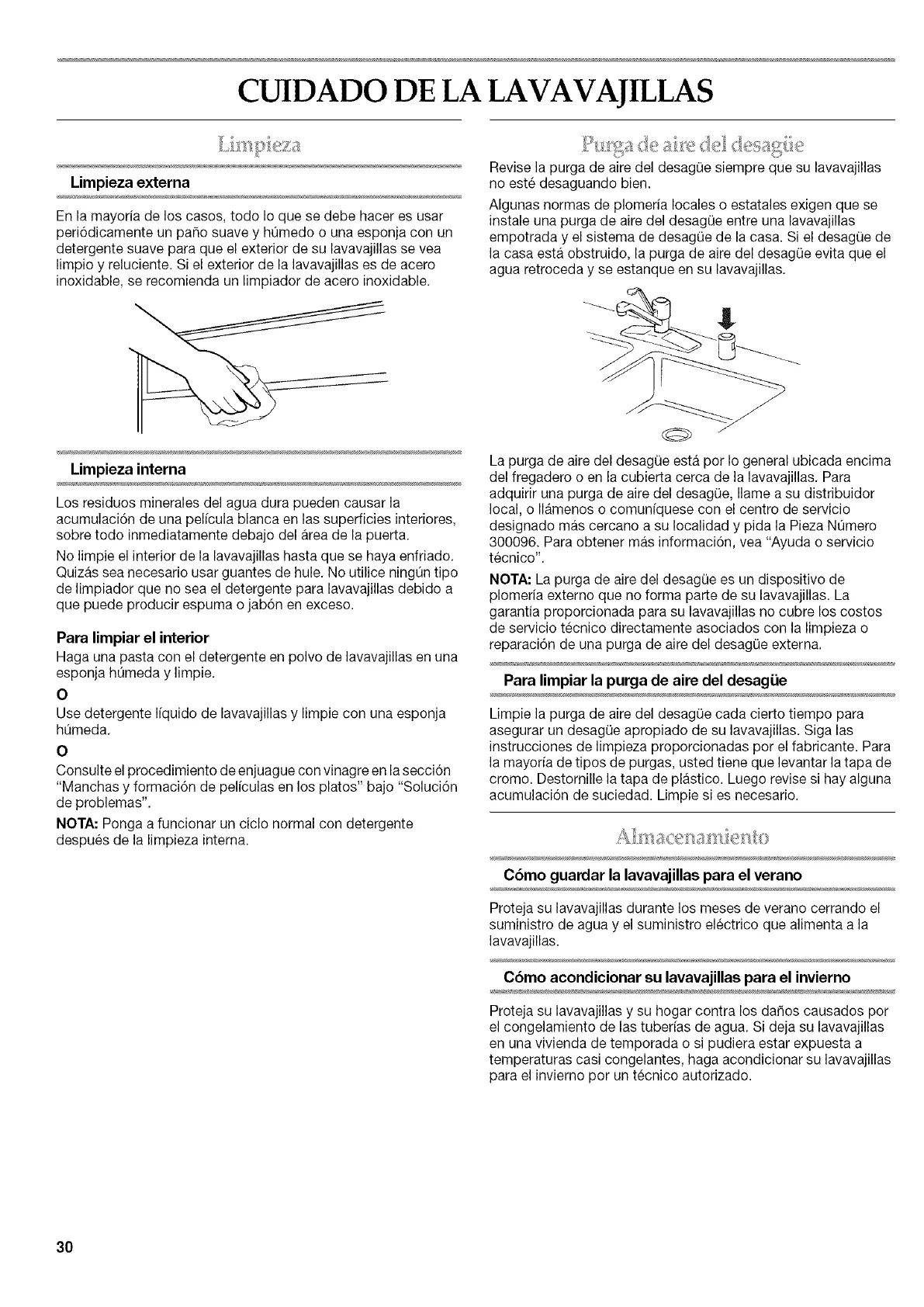 Revise la purga de aire del desag0e siempre que su lavavajillas