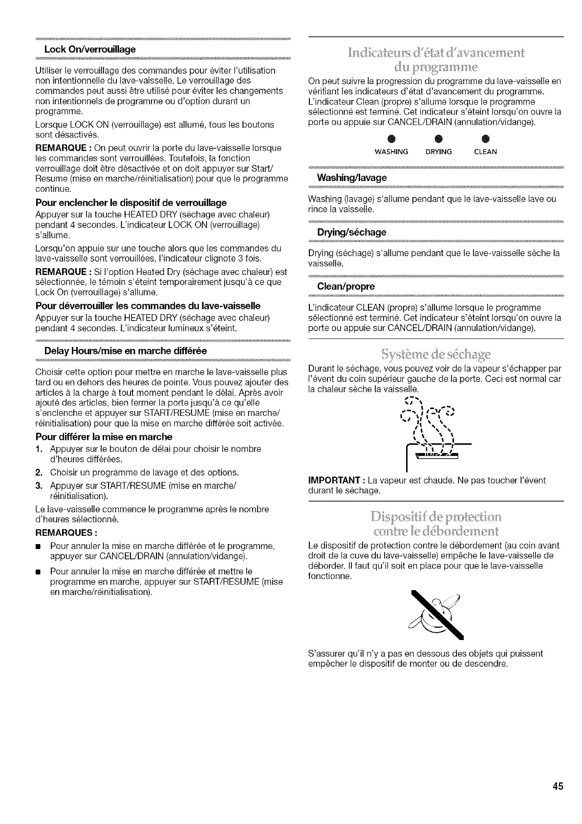 non intentionnelle du lave-vaisselle. Le verrouillage des