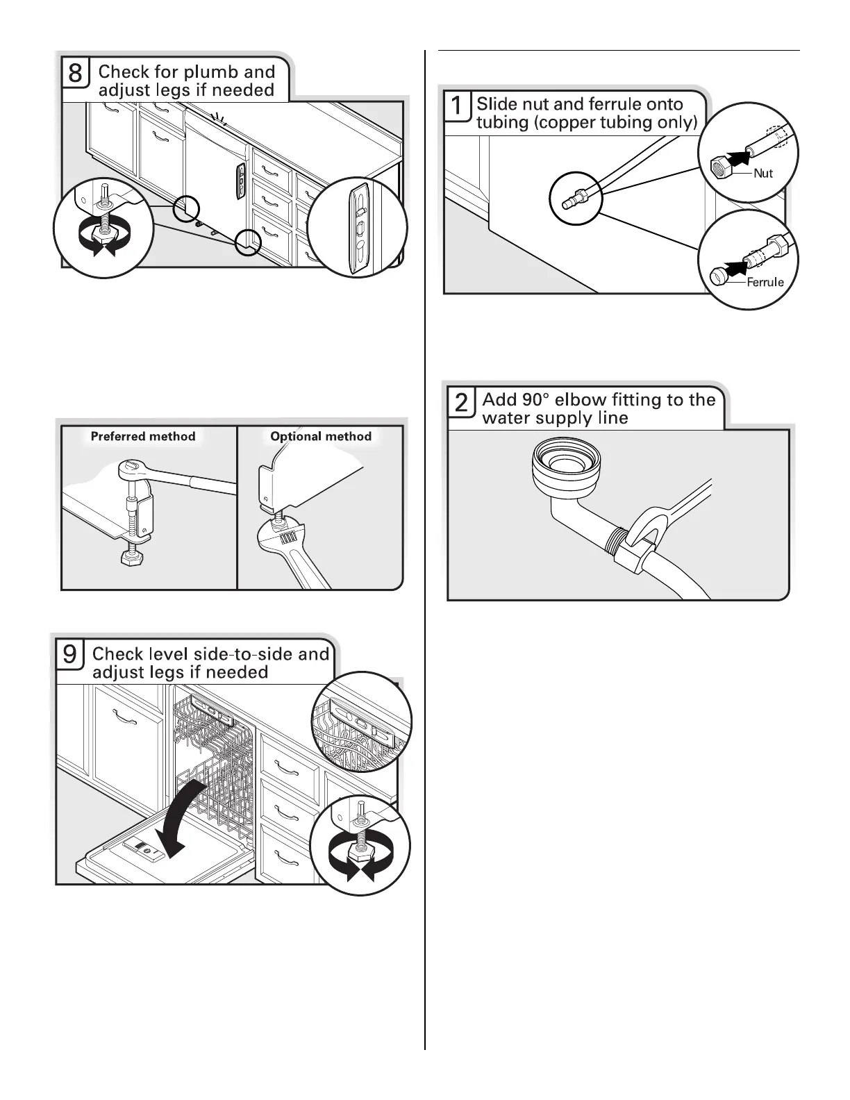 needed, adjust leveling leg until dishwasher is plumb. Repeat for