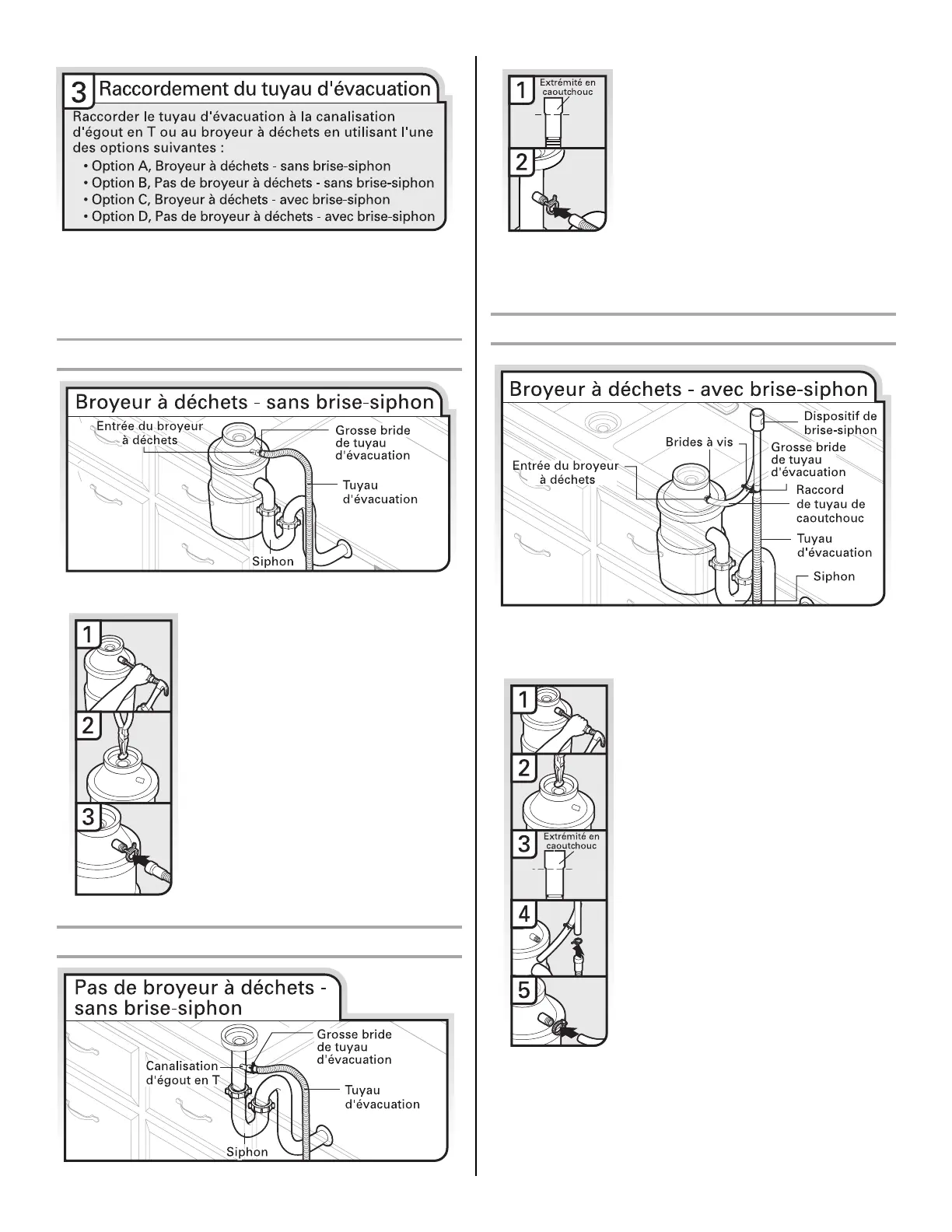 Option A, Broyeur à déchets – sans brise-siphon
