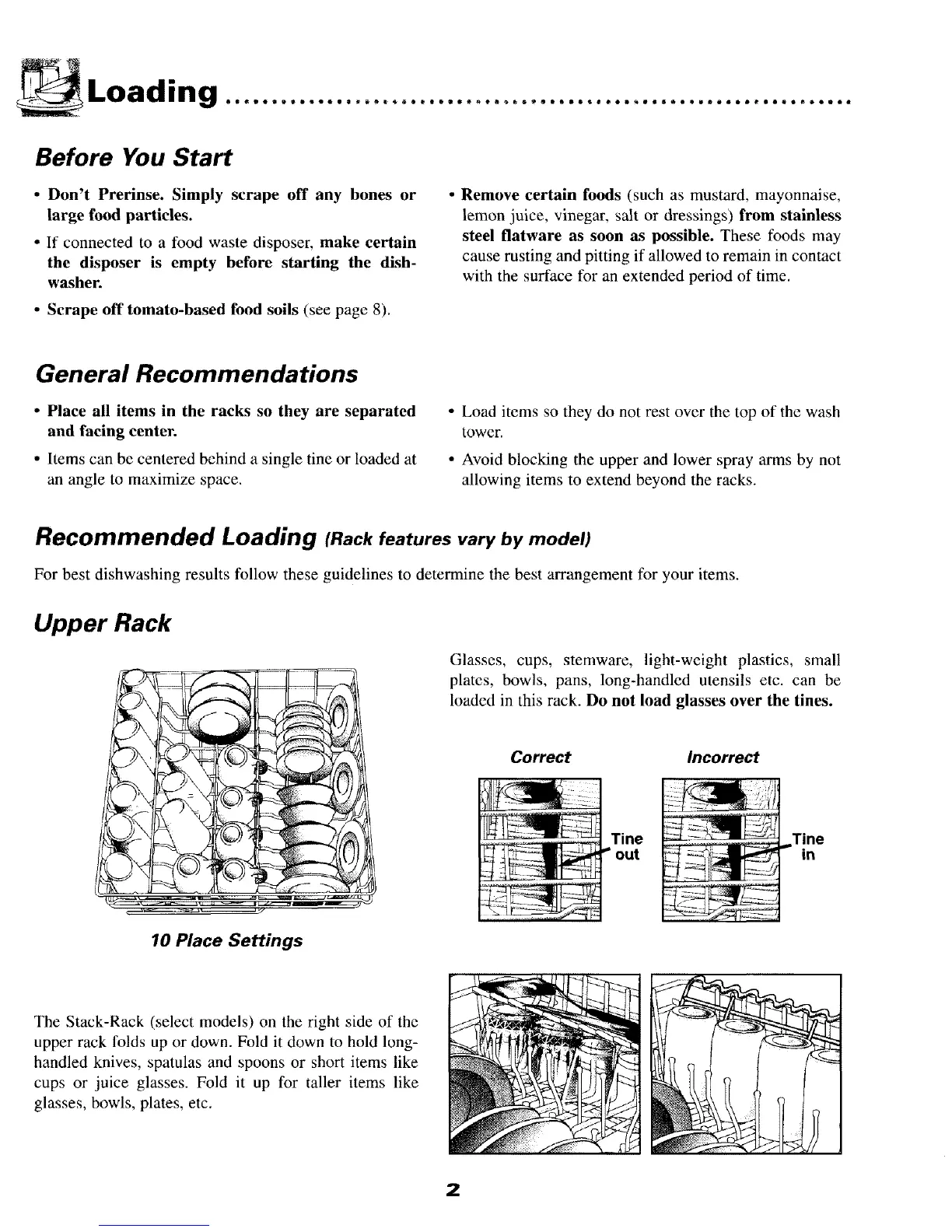 loaded in this rack. Do not load glasses over the tines.