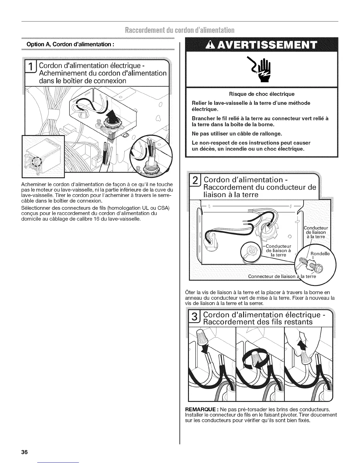 lave-vaisselle. Tirer le cordon pour I'acheminer a travers le serre-