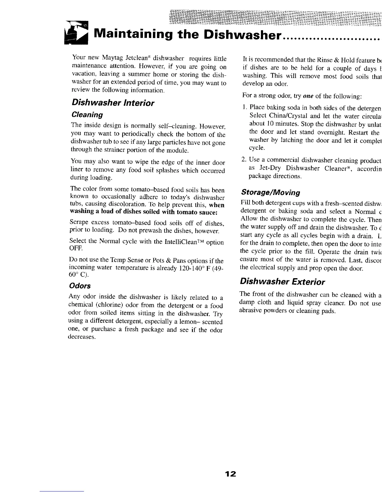 Your new Maytag Jetclean ®dishwasher requires little It is recommended that the Rinse & Hold feature 1