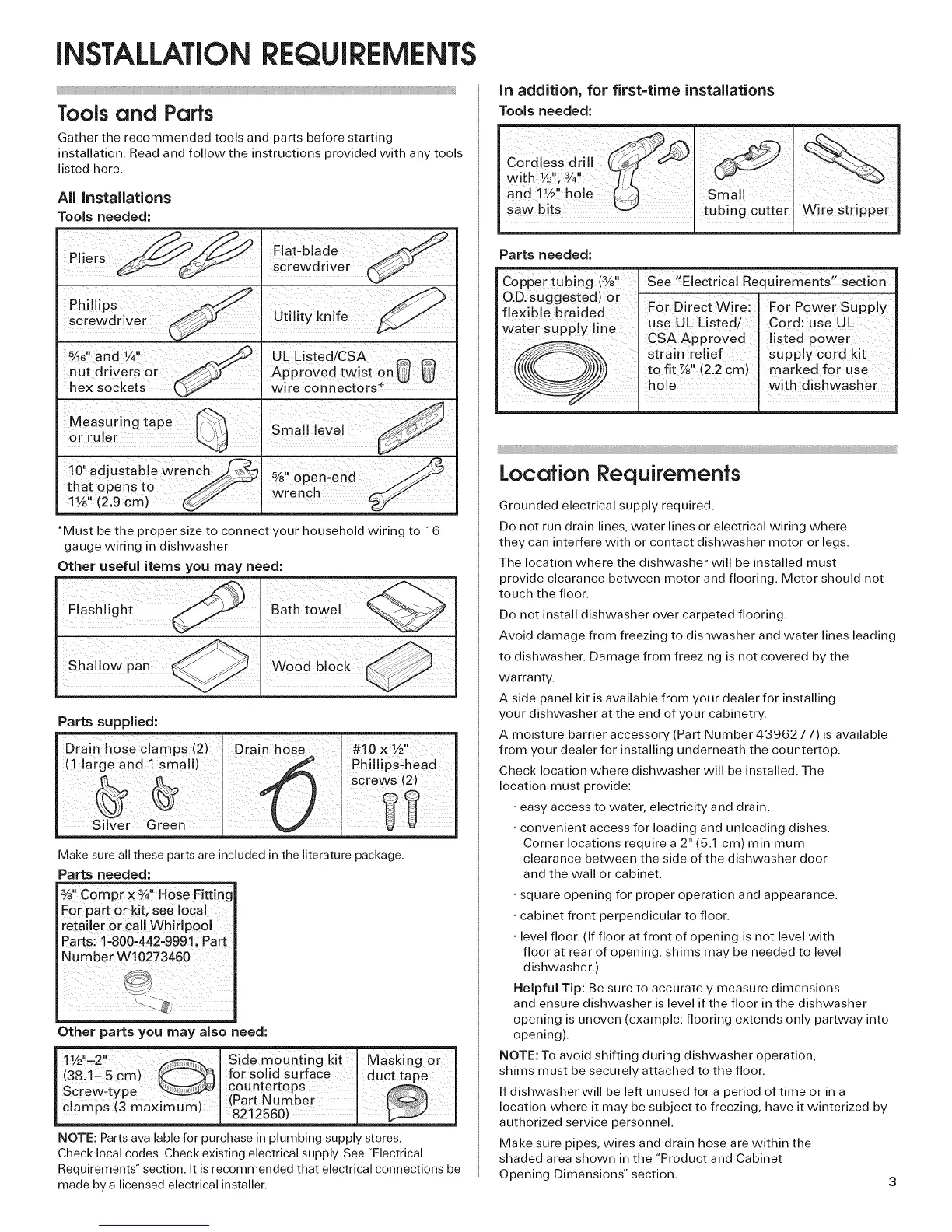 Check location where dishwasher will be installed. The