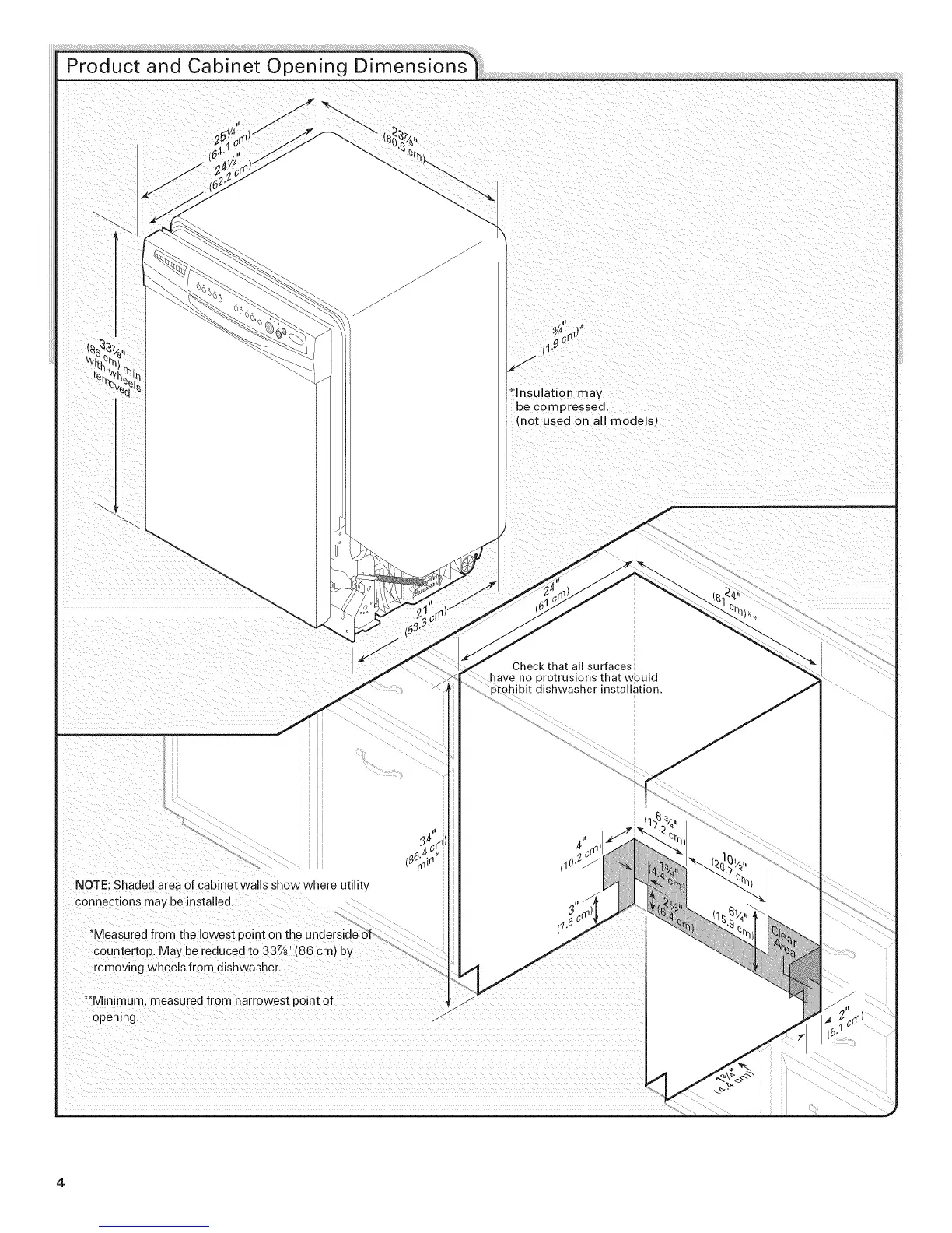 NOTE:Shadedareaofcabinetwallsshowwhereutility