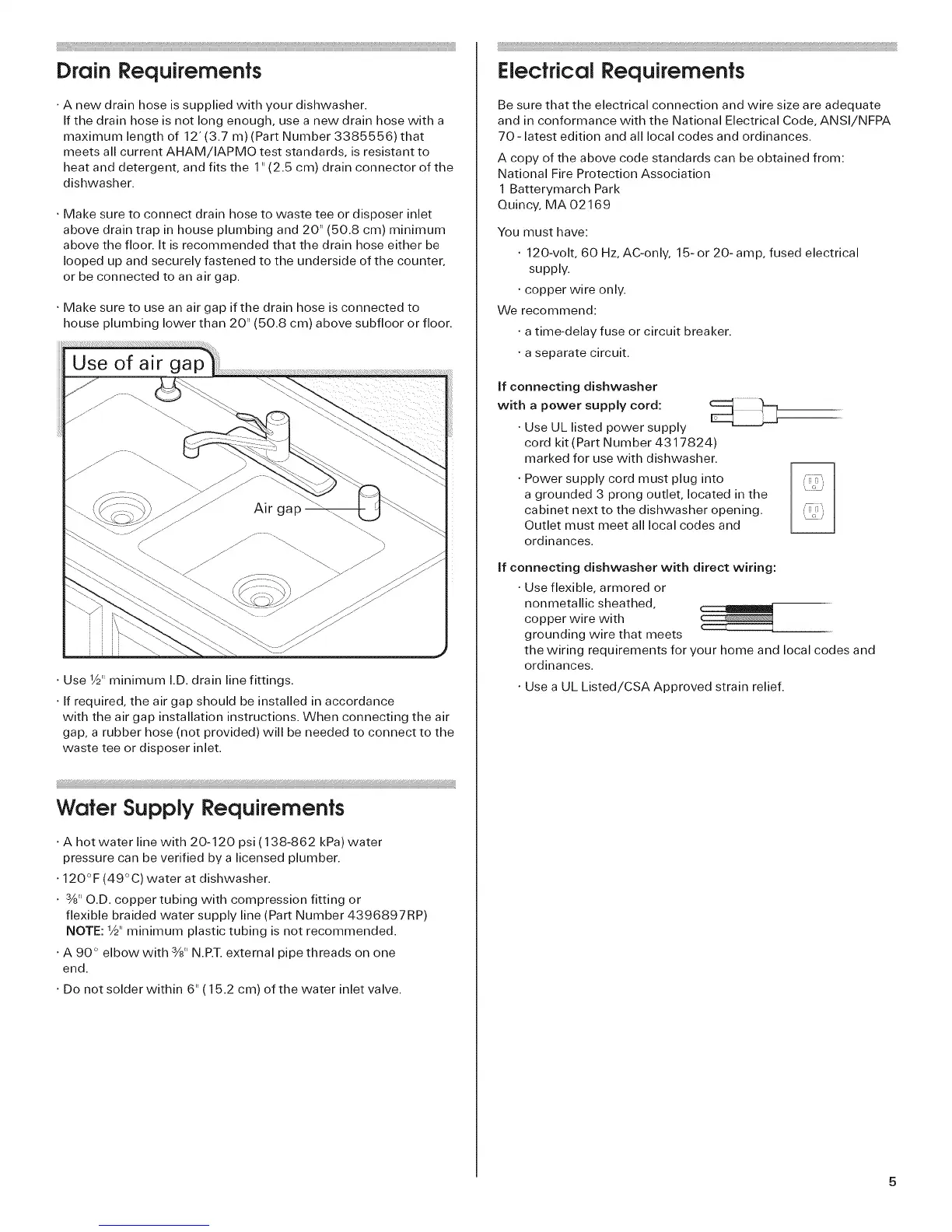 with the air gap installation instructions. When connecting the air