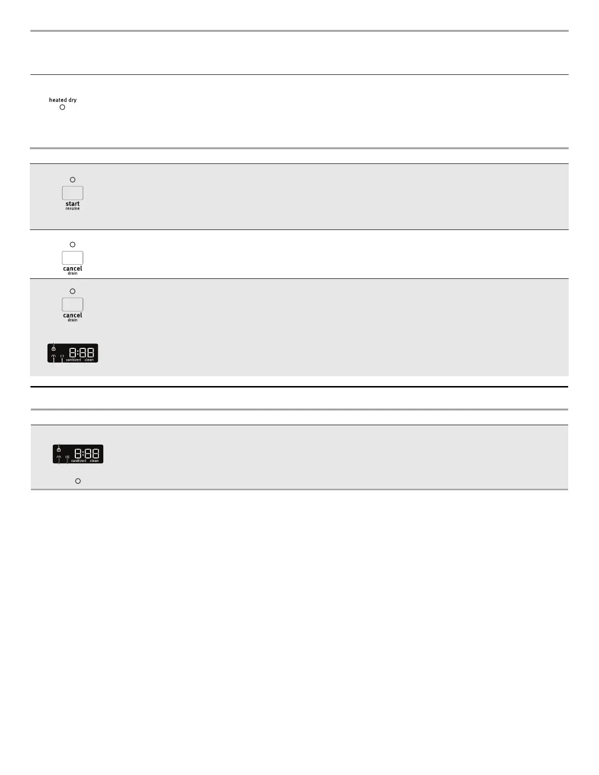 Press to cancel wash cycle Close door firmly. The dishwasher starts a 3-minute drain (if needed). Let dishwasher