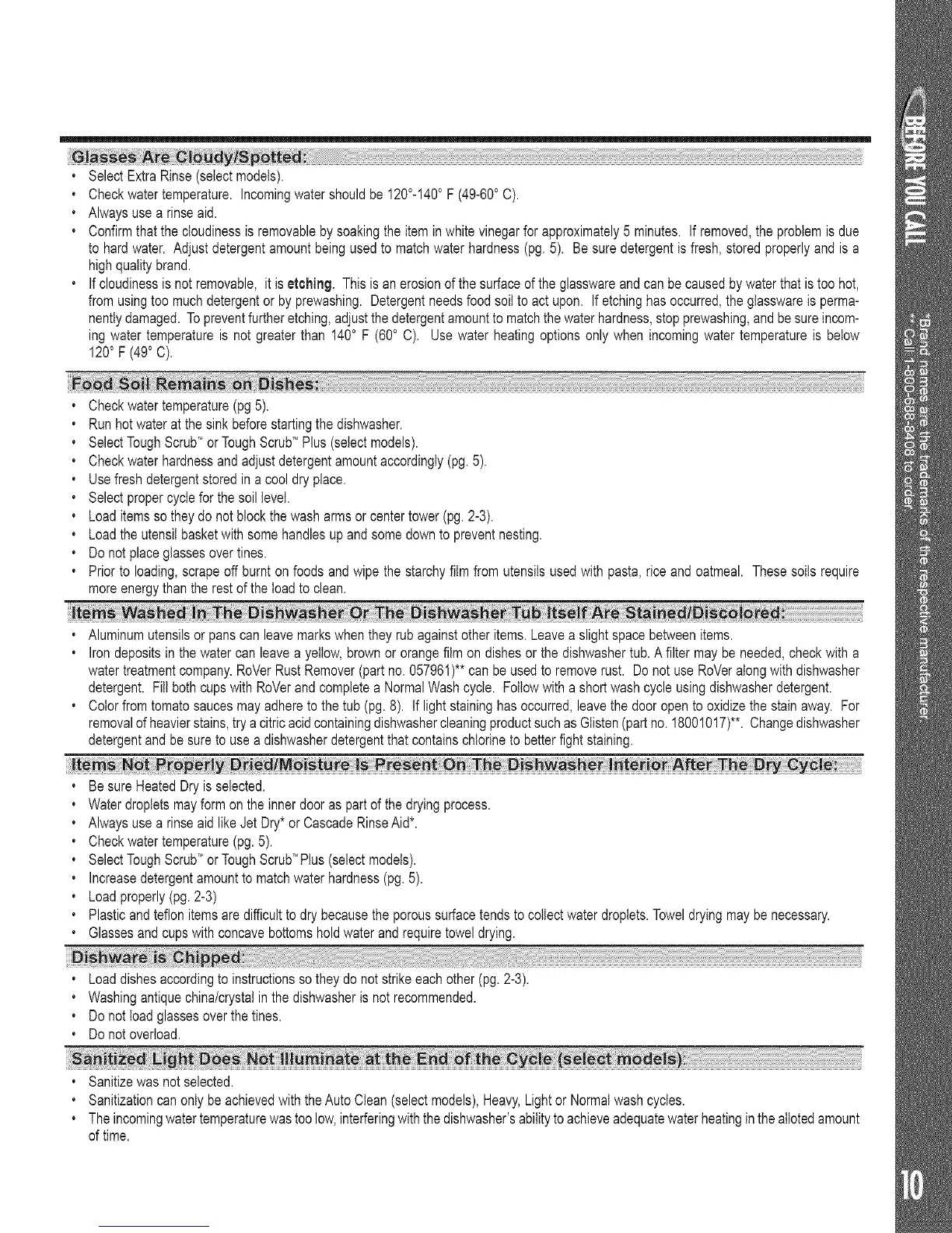 removalofheavierstains,trya citricacidcontainingdishwashercleaningproductsuchasGlisten(partno.18001017)**.Changedishwasher