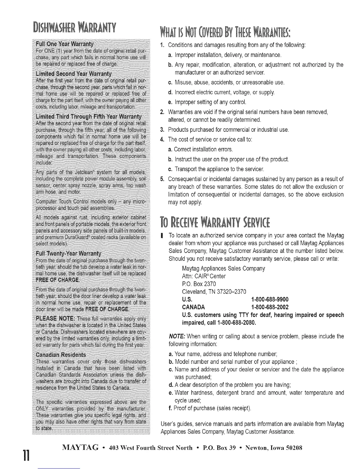 User's guides, servicemanualsand parts informationare availablefrom Maytag