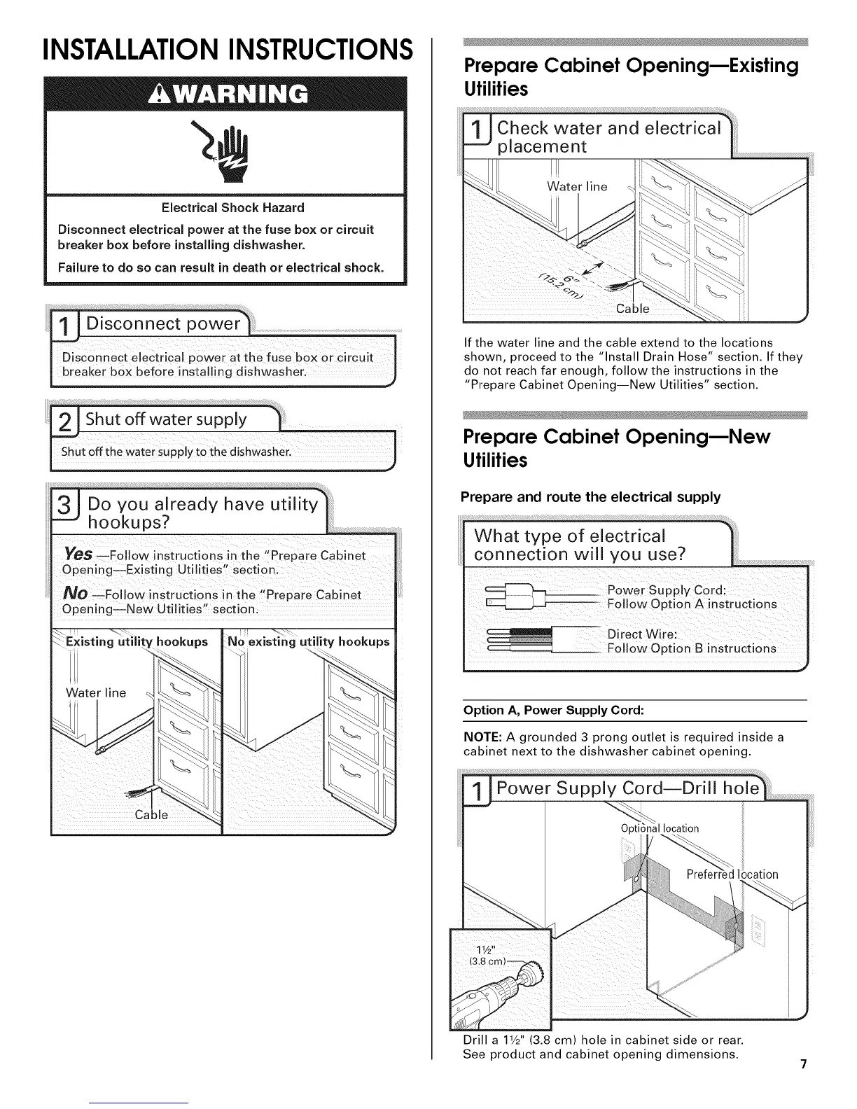 Drill a 11/2"(3.8 cm) hole in cabinet side or rear.