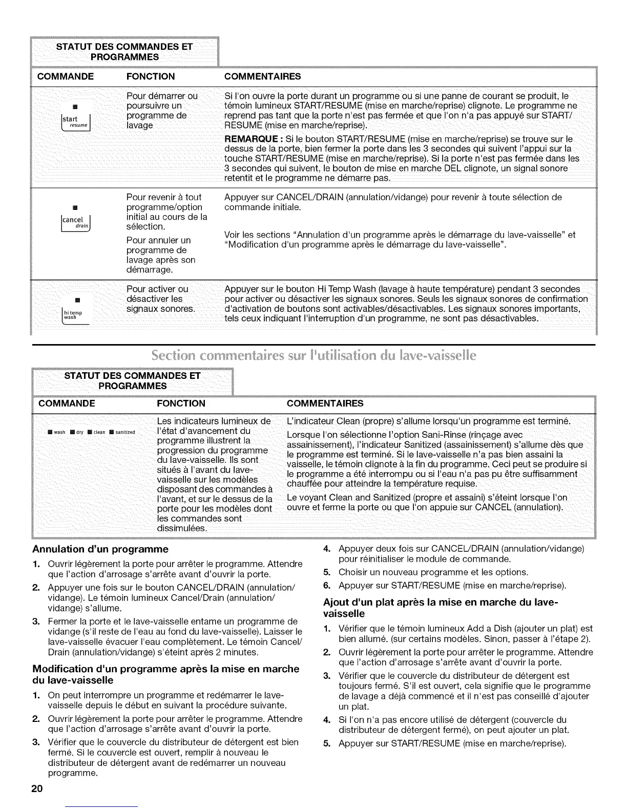 Voir les sections "Annulation d'un programme apres le demarrage du lave-vaisselle" et