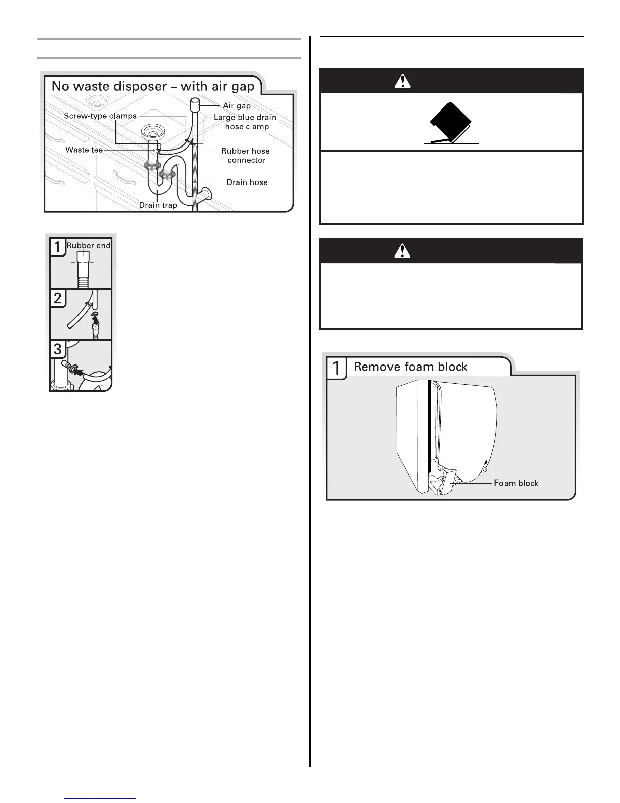 2. Attach drain hose to air gap with