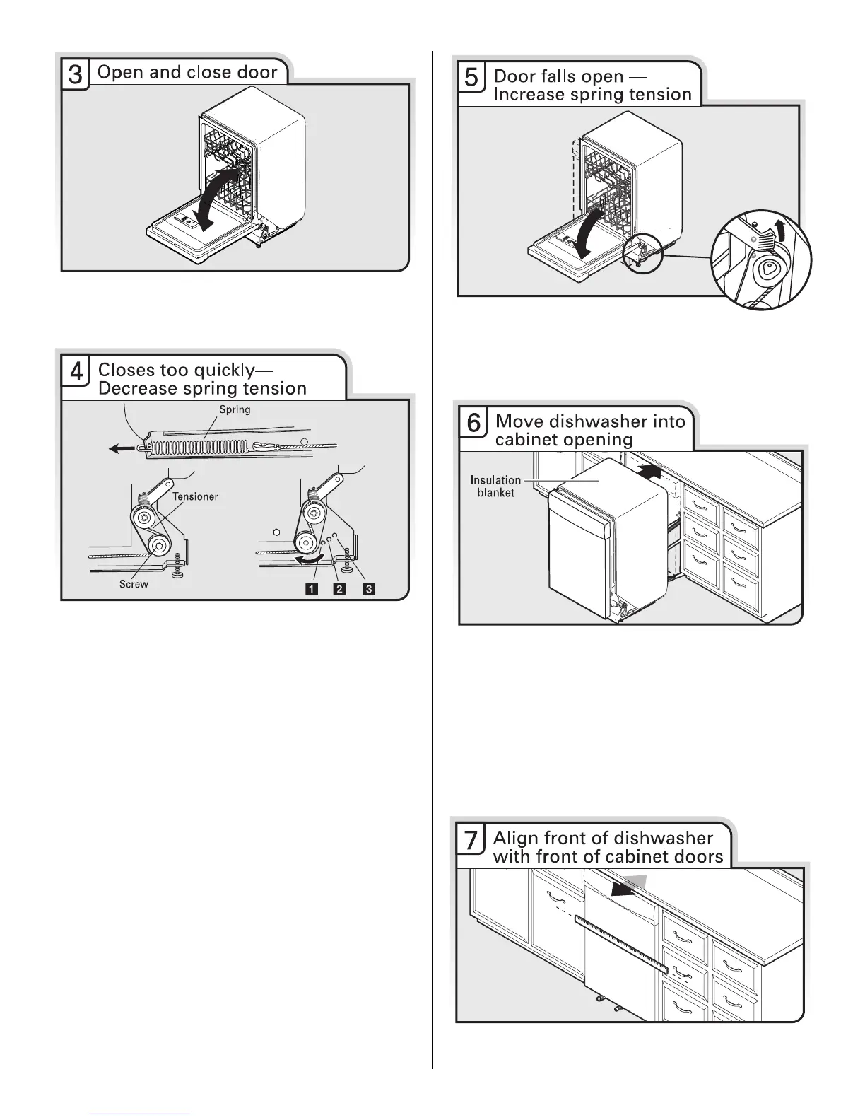 leg of dishwasher. If the door closes by itself, move the tensioner