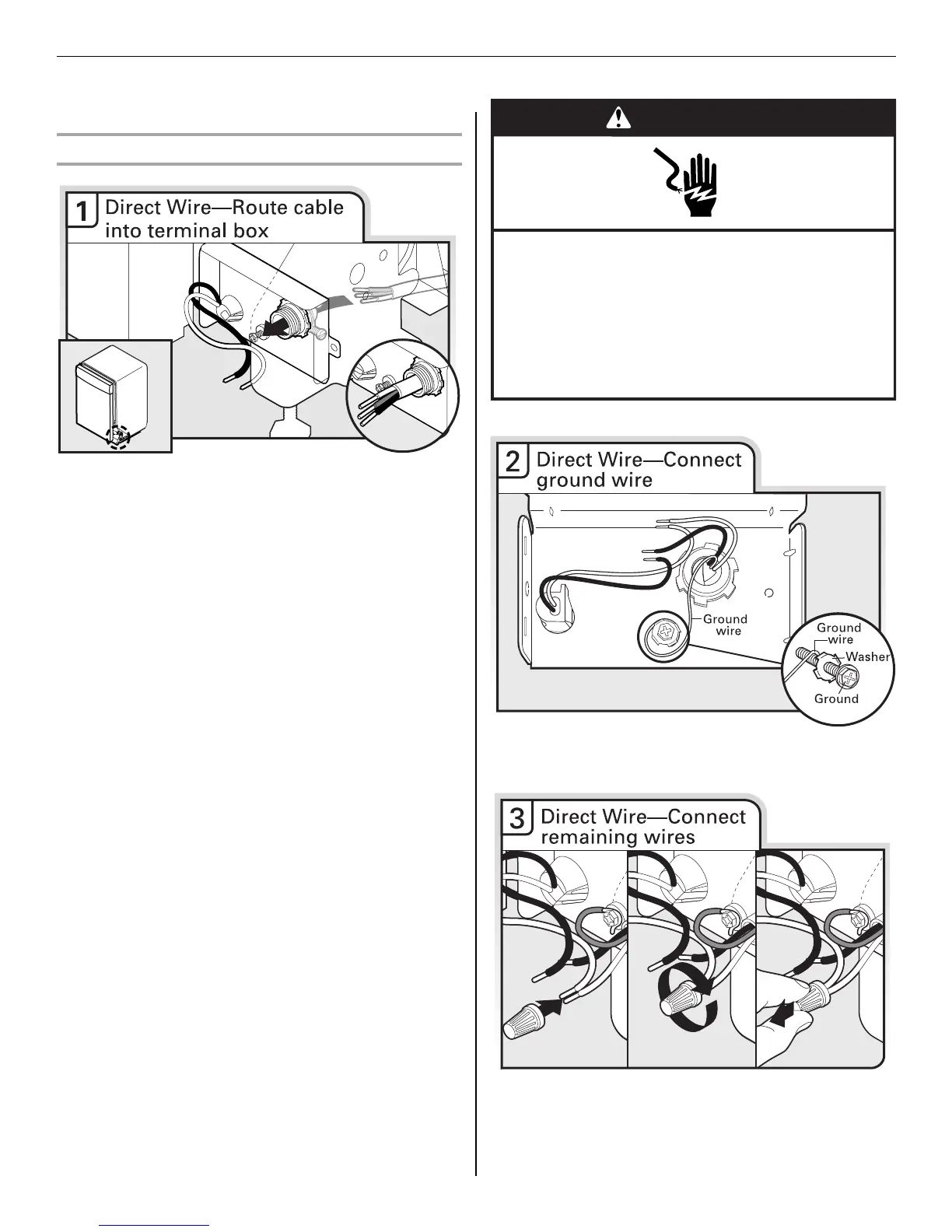 part of dishwasher tub. Pull cable through UL Listed/CSA