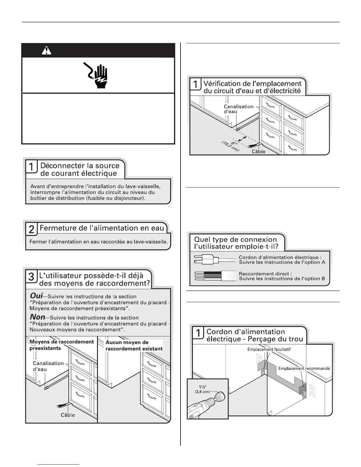 Interrompre l'alimentation électrique avant d'installer
