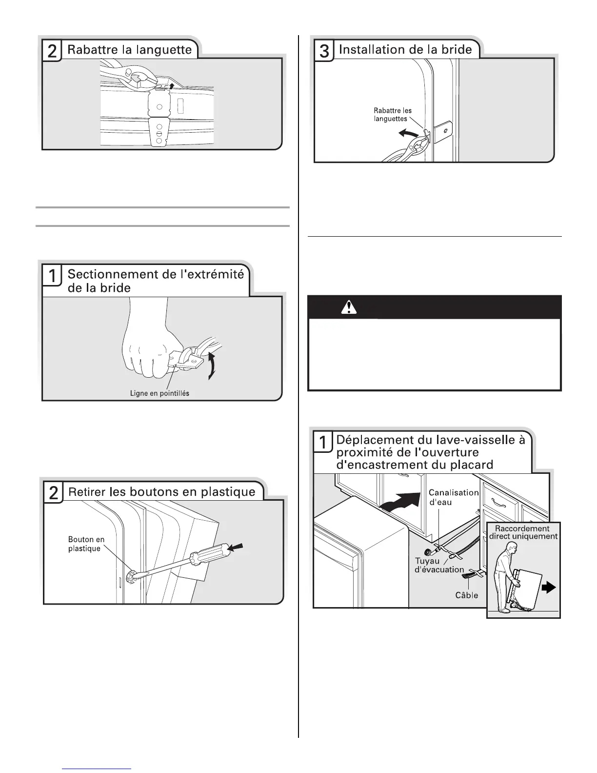 la bride en place. Répéter cette opération par l'autre côté du lave-