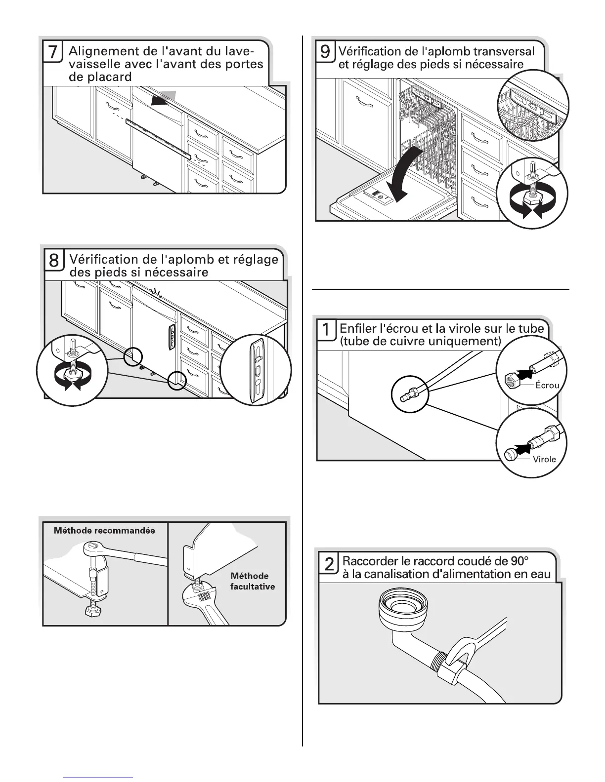 pied de nivellement jusqu'à ce que le lave-vaisselle soit d'aplomb.