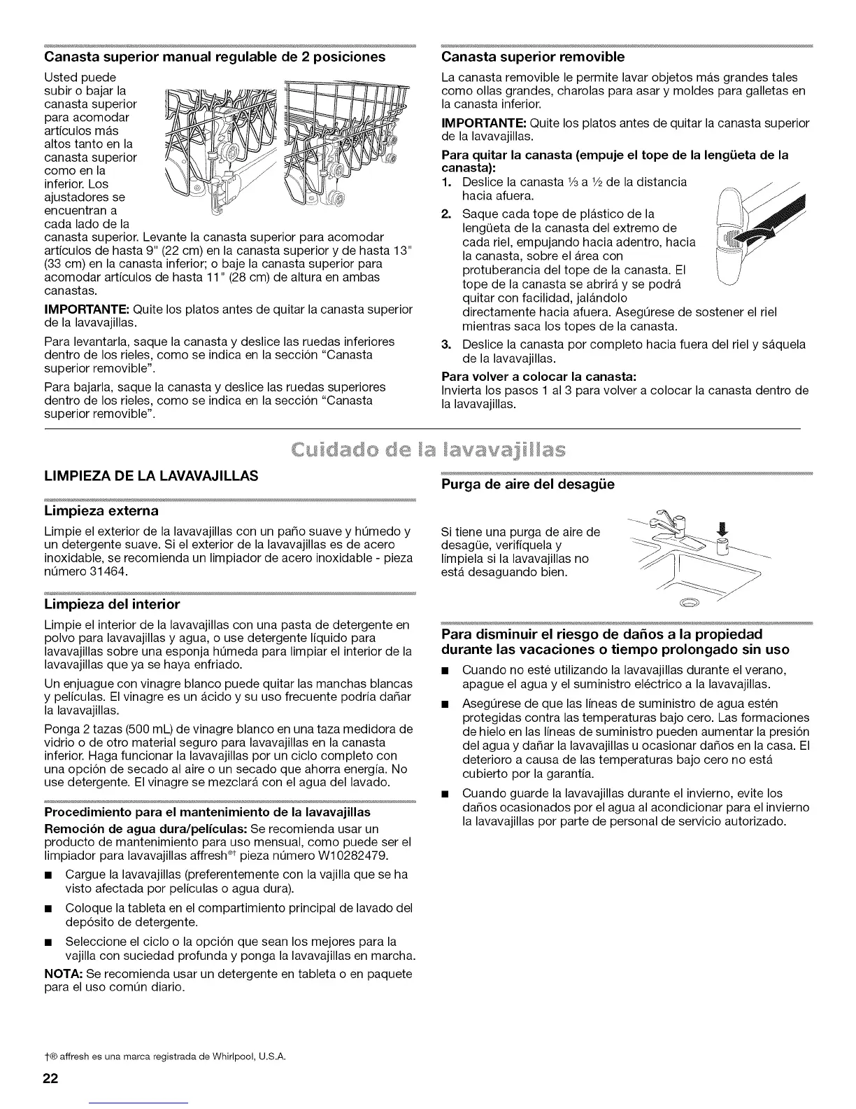 1-® affresh es una marca registrada de Whirlpool, U.S.A.