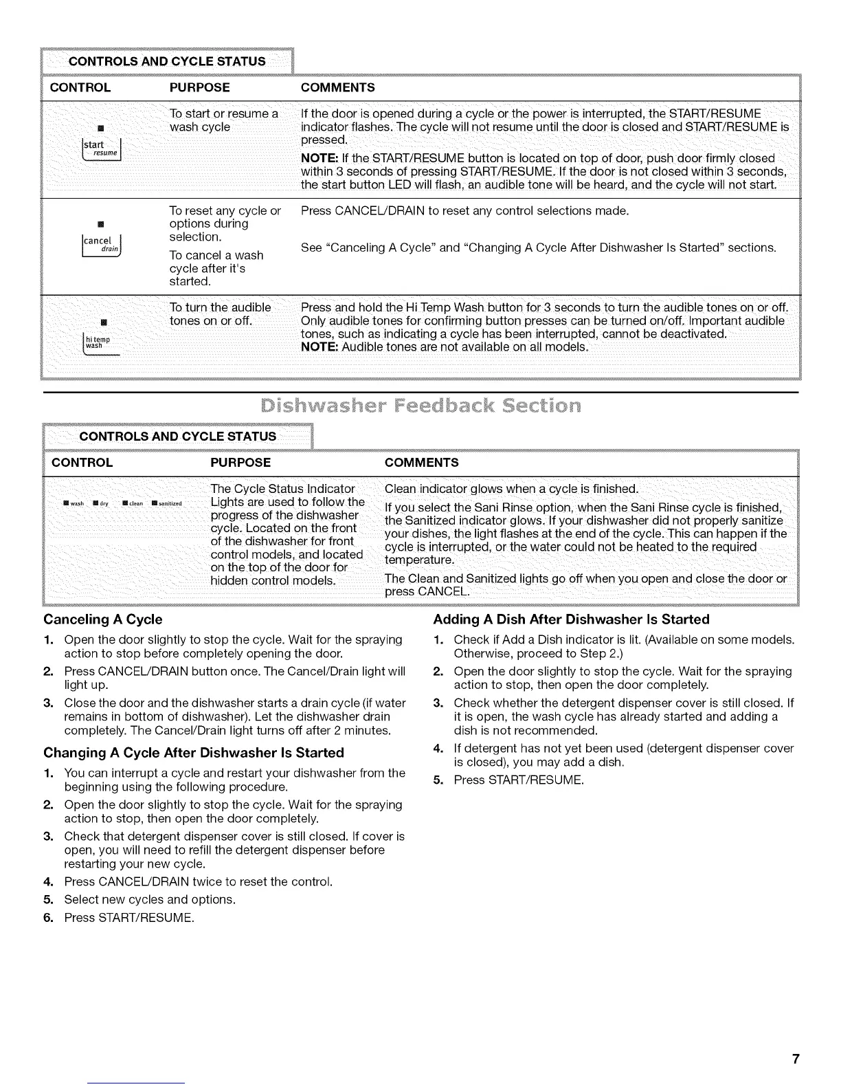 See "Canceling A Cycle" and "Changing A Cycle After Dishwasher Is Started" sections.