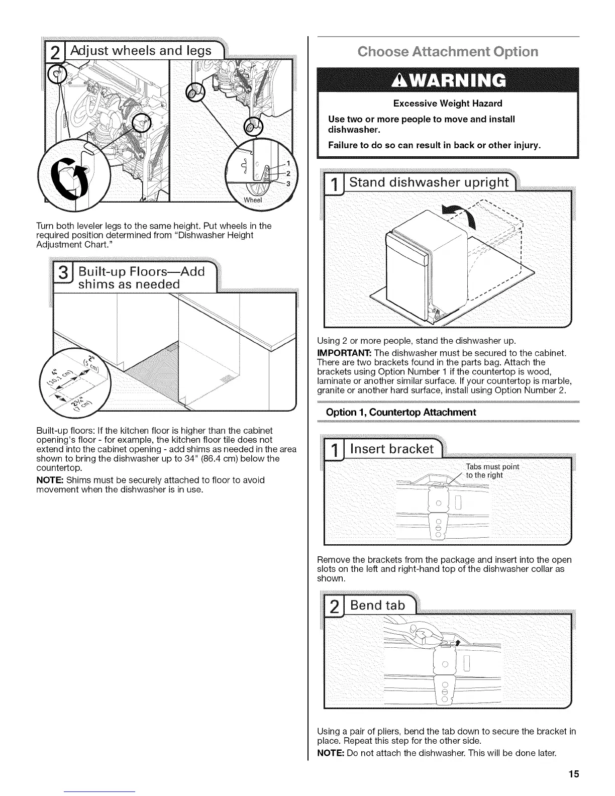 NOTE: Do not attach the dishwasher. This will be done later.