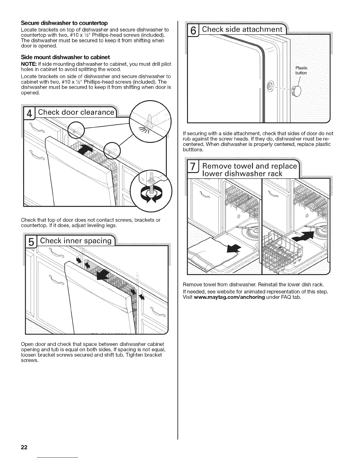 dishwasher must be secured to keep it from shifting when door is