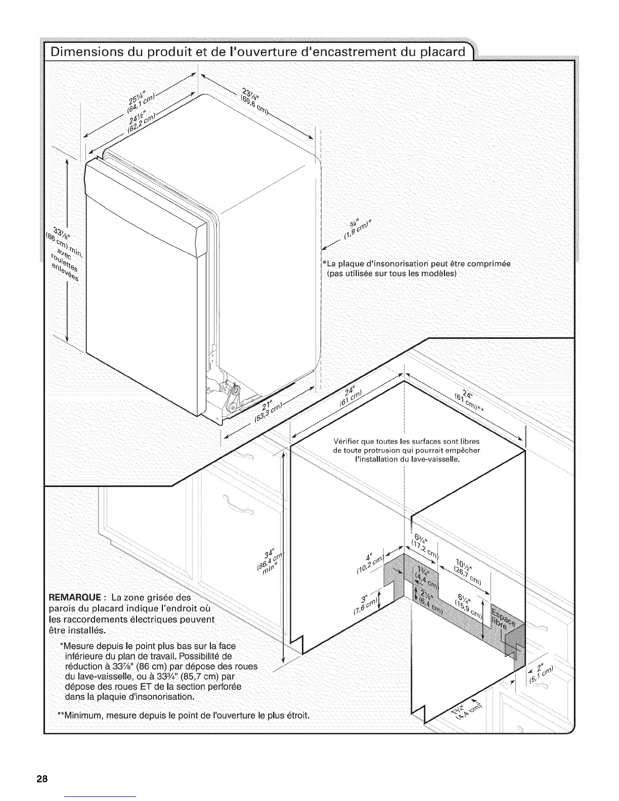 du lave-vaisselle, ou & 333/4'' (85,7 cm) par