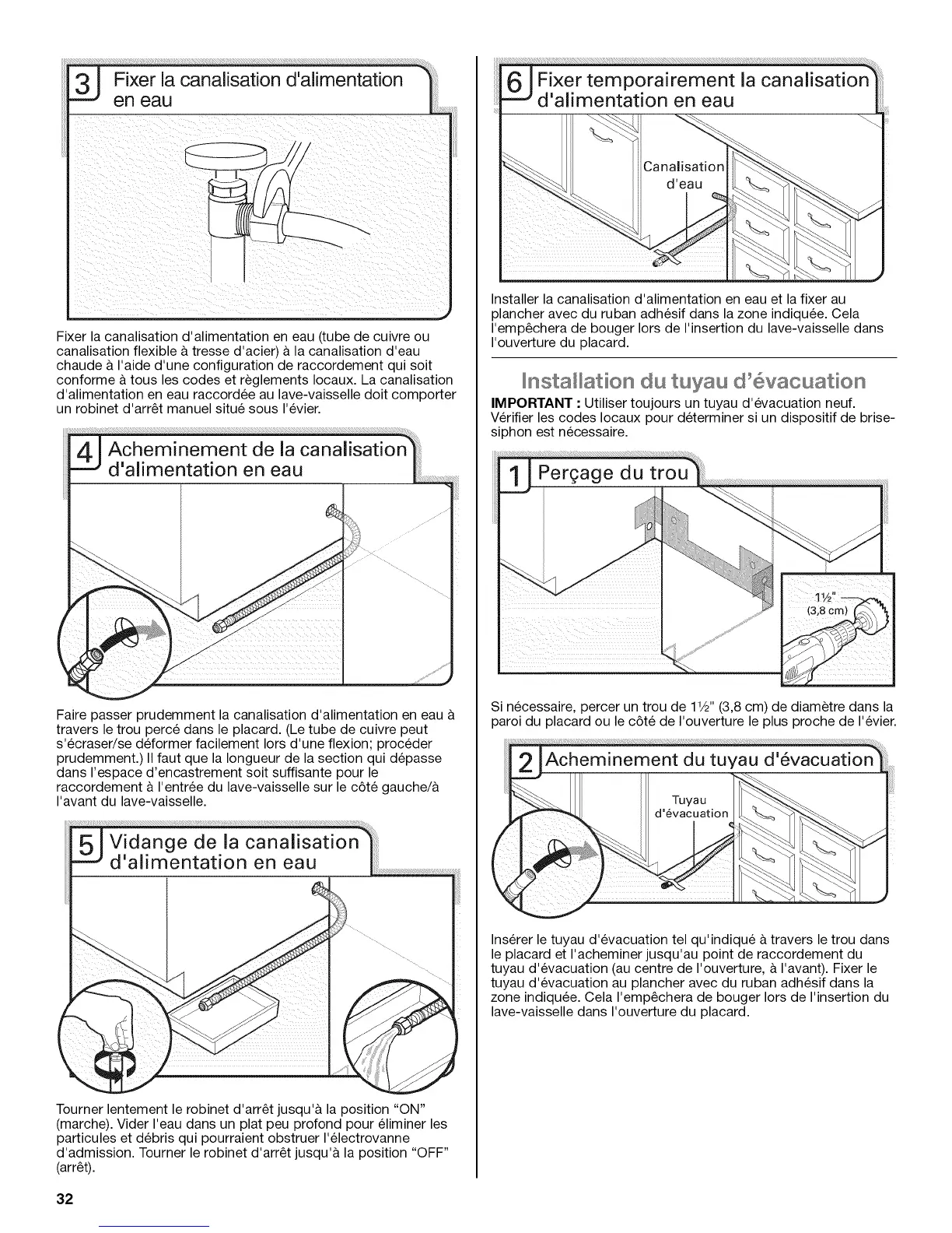 IMPORTANT : Utiliser toujours un tuyau d'evacuation neuf.