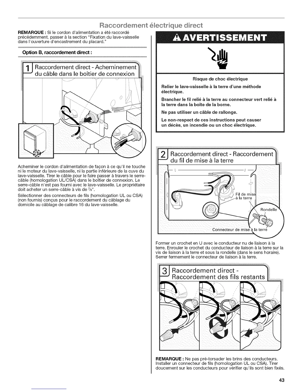 domicile au c&blage de calibre 16 du lave-vaisselle.