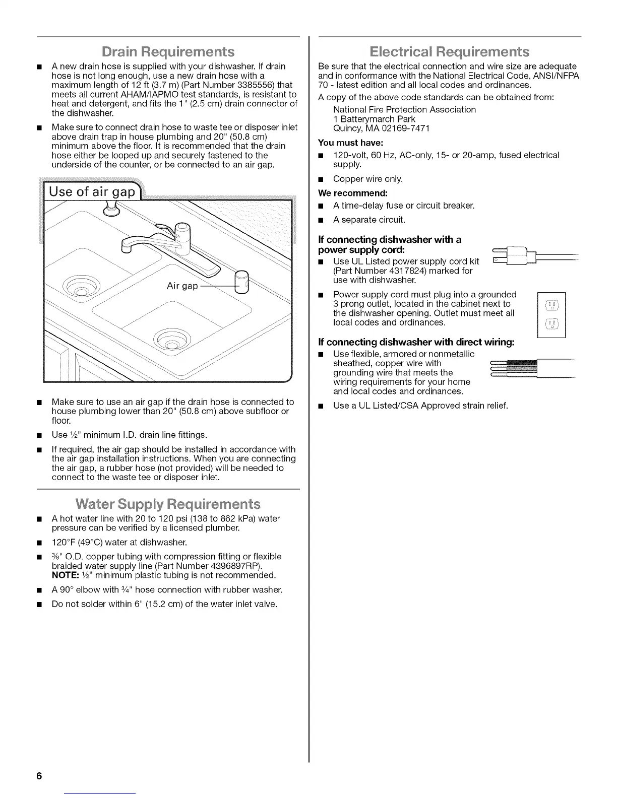 • 120-volt, 60 Hz, AC-only, 15- or 20-amp, fused electrical
