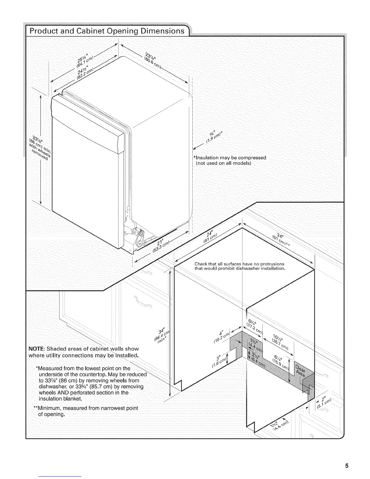 dishwasher, or 333/2' (85.7 cm) by removing