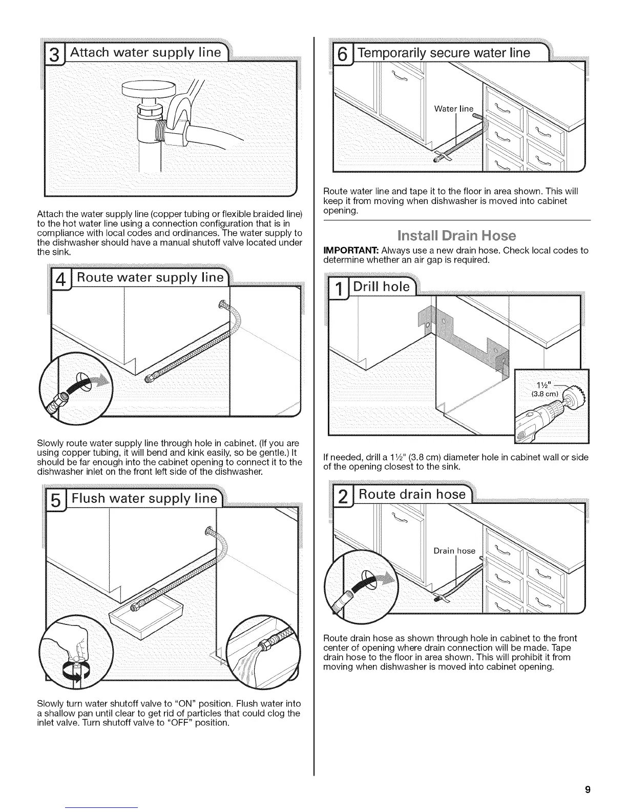 Route water line and tape it to the floor in area shown. This will