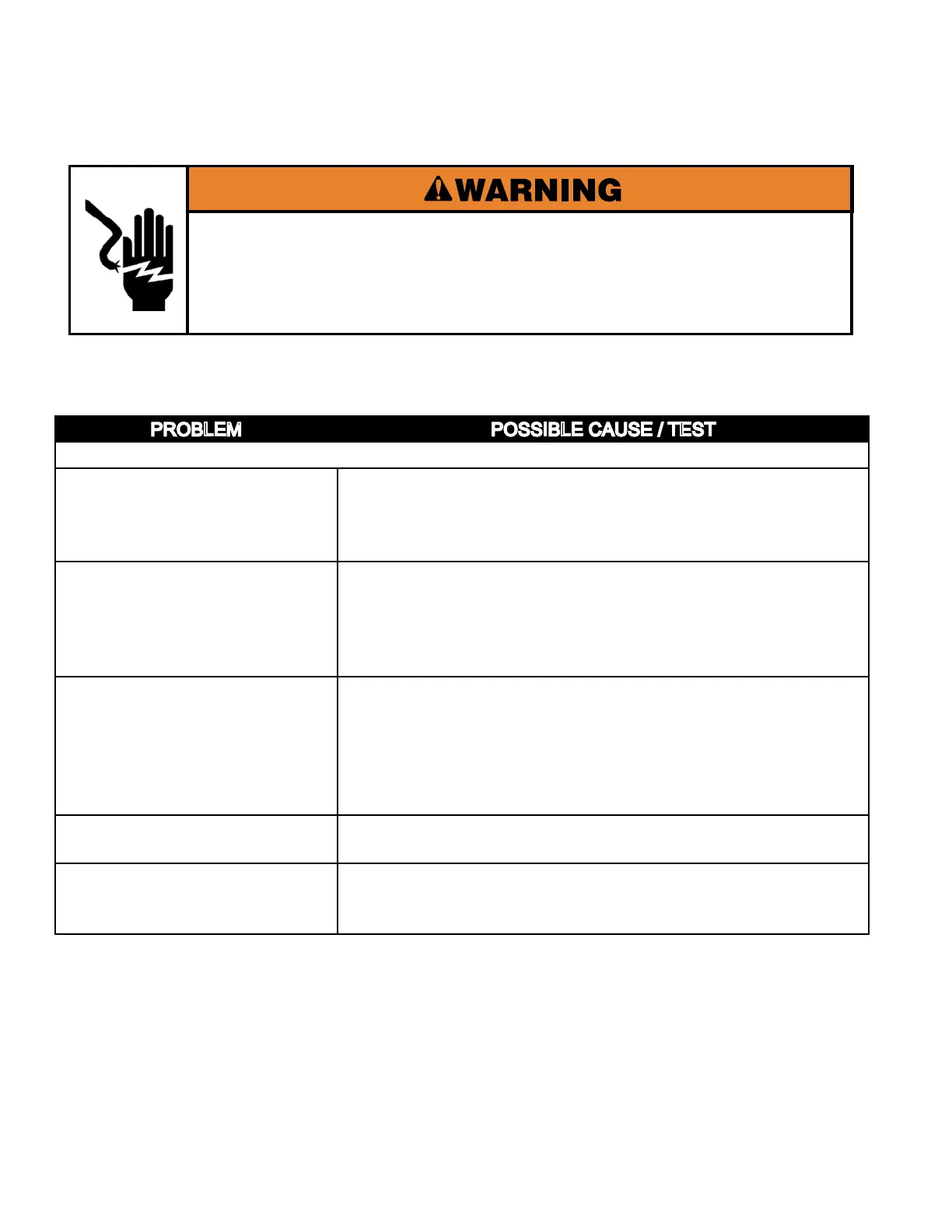 NOTE: Possible Cause/Tests MUST be performed in the sequence shown for each problem.