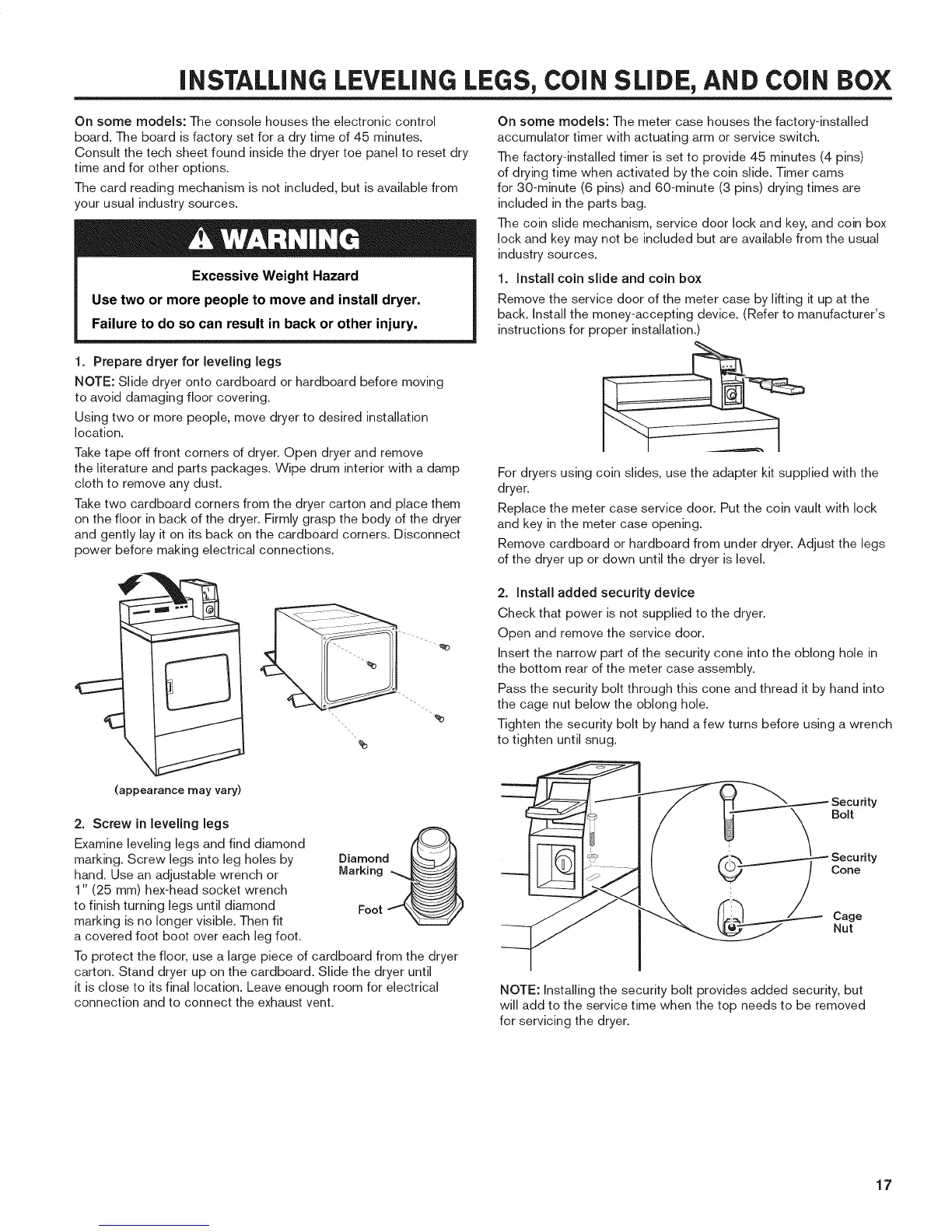 iNSTALLiNG LEVELING LEGS, COiN SLIDE, AND COiN BOX