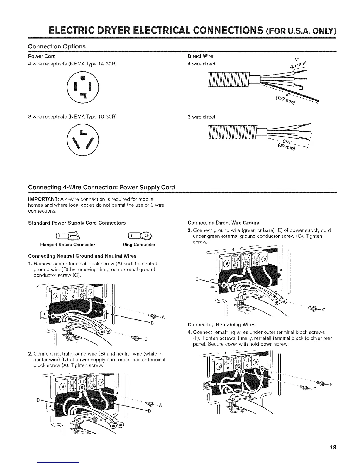 ELECTRIC DRYER ELECTRICALCONNECTIONS (FORU.S.A.ONLY)