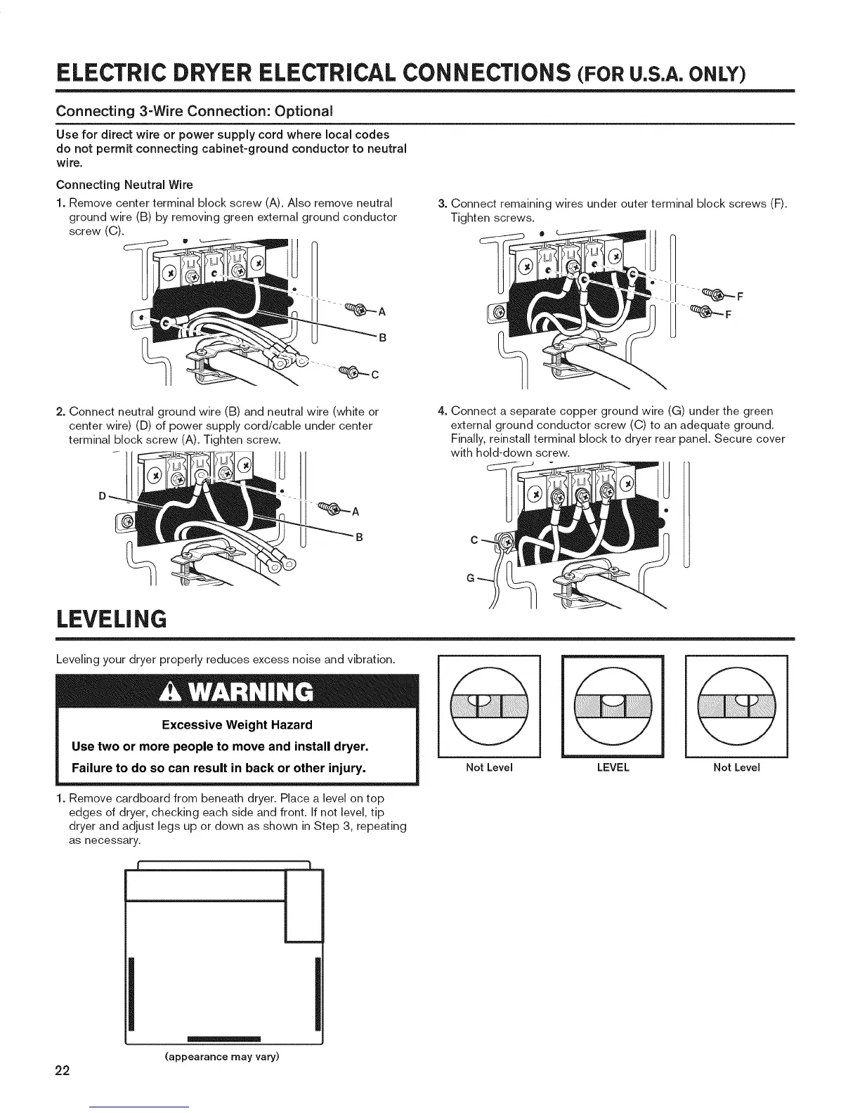 dryer and adjust legs up or down as shown in Step 3, repeating