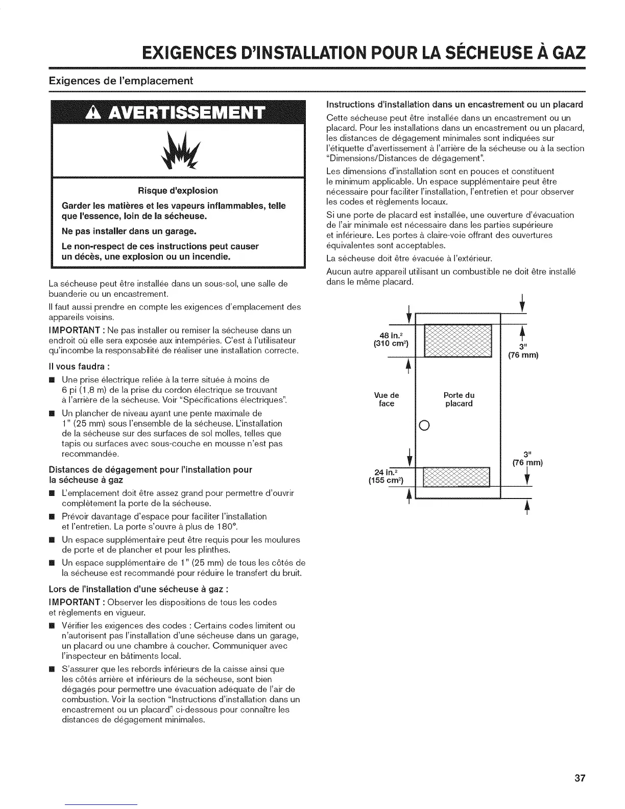 n'autorisent pas I'[nstallation d'une secheuse dans un garage,