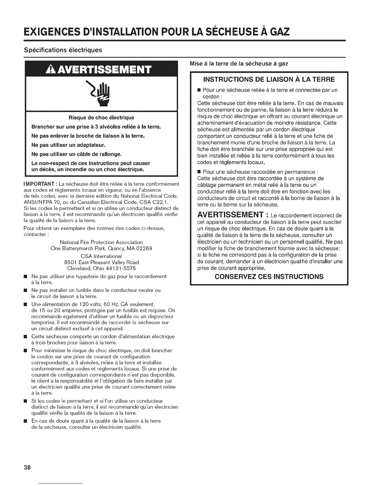 ANSI/NFPA 70, ou du Canadian Electrical Code, CSA C22.1.