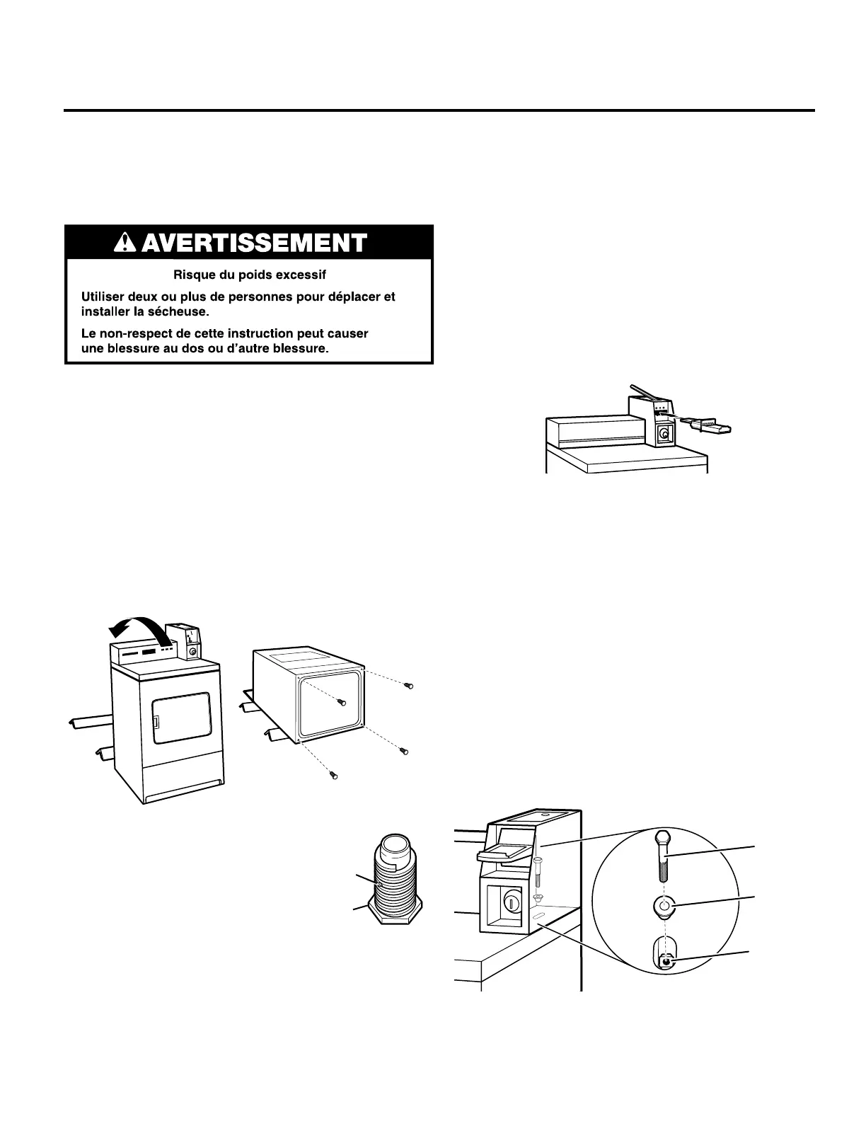 provenant de l’emballage de la sécheuse. Redresser la sécheuse