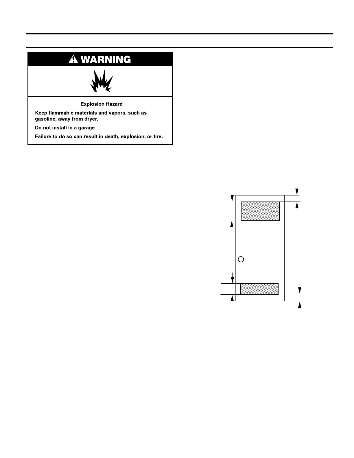 ■ Additional spacing of 1" (25 mm) on all sides of the dryer