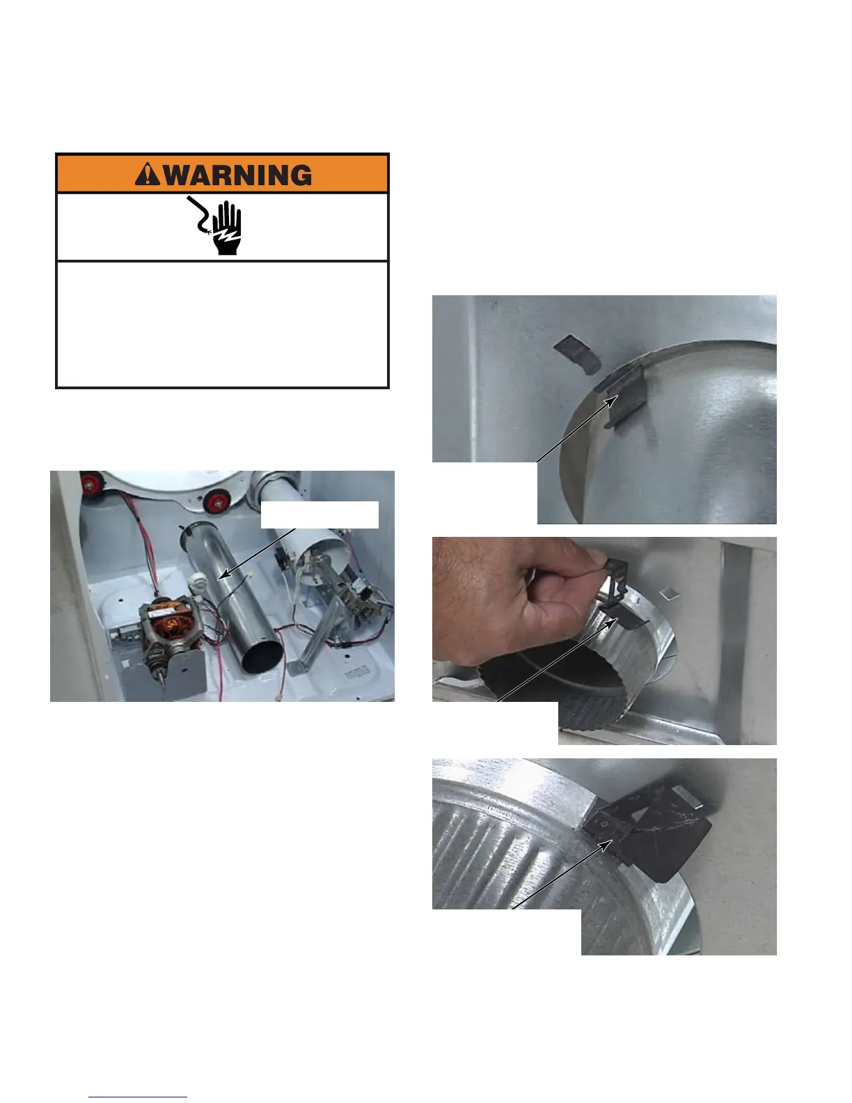 to blower housing. Pull exhaust duct out the