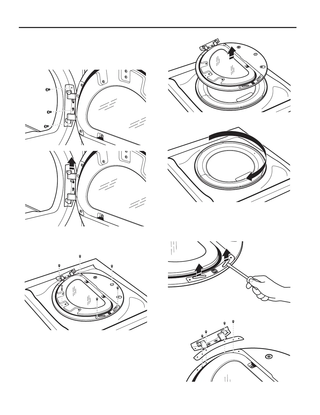 2. Remove the 4 screws that attach to inner door hinge.