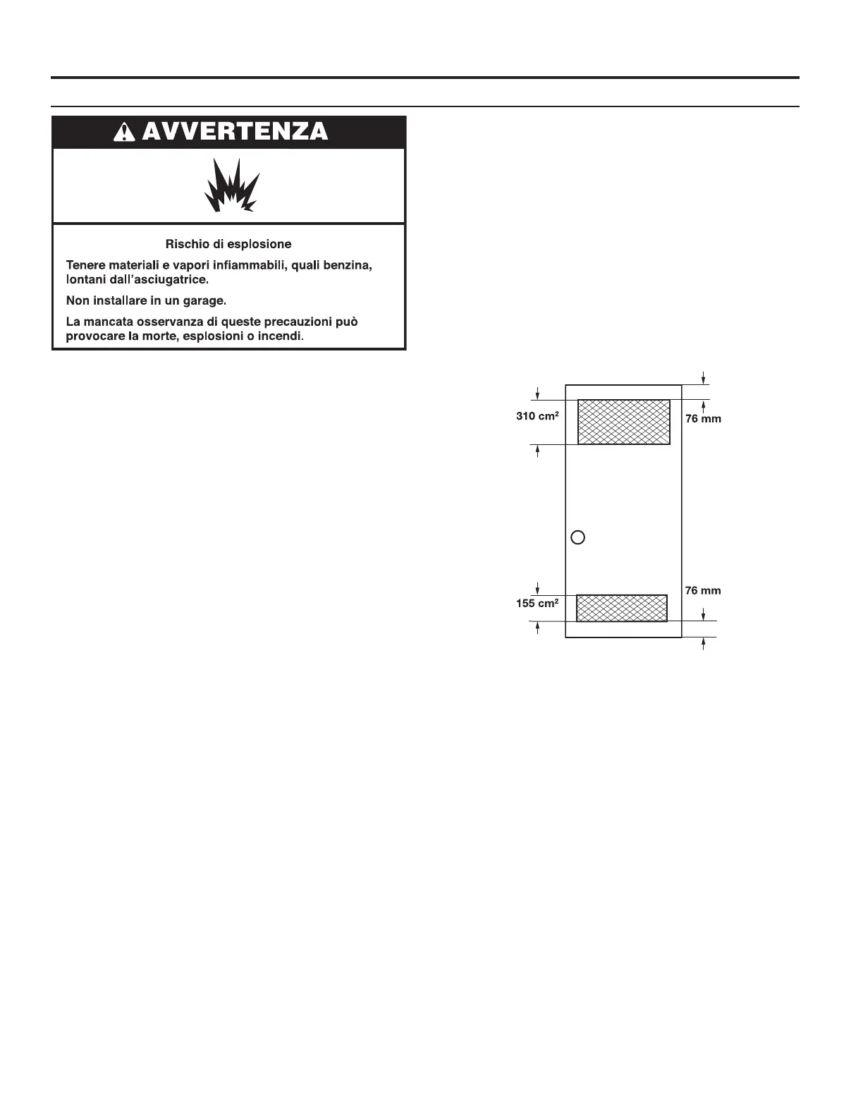 aggiuntivo di 25 mm (1") su tutti i lati d’asciugatrice.