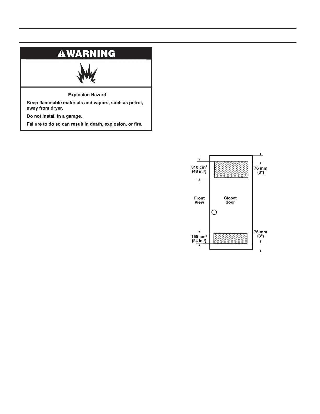 n Additional spacing of 25 mm (1") on all sides of the dryer