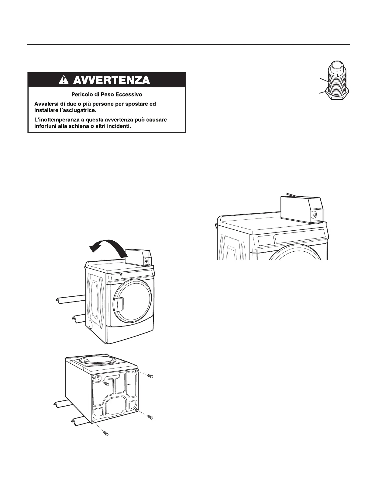 1. Preparare l’asciugatrice per i piedini regolabili