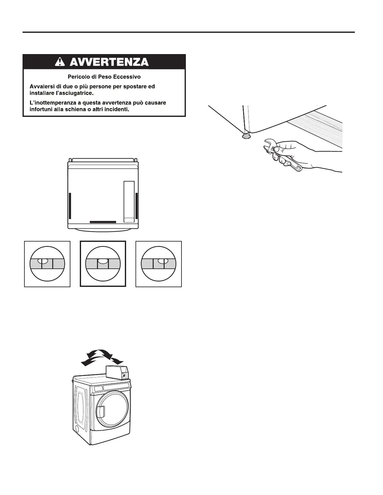 parte anteriore. Se non è a livello, inclinare l’asciugatrice