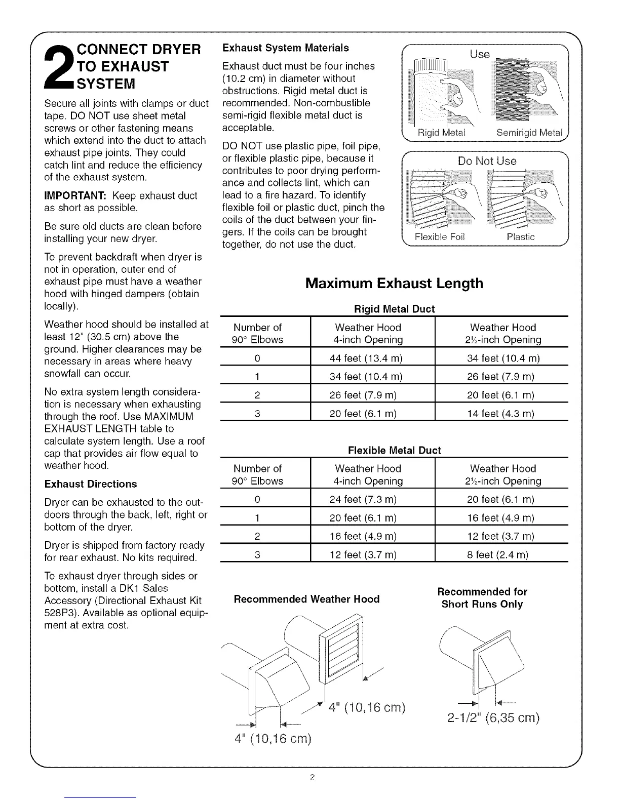 Exhaust duct must be four inches
