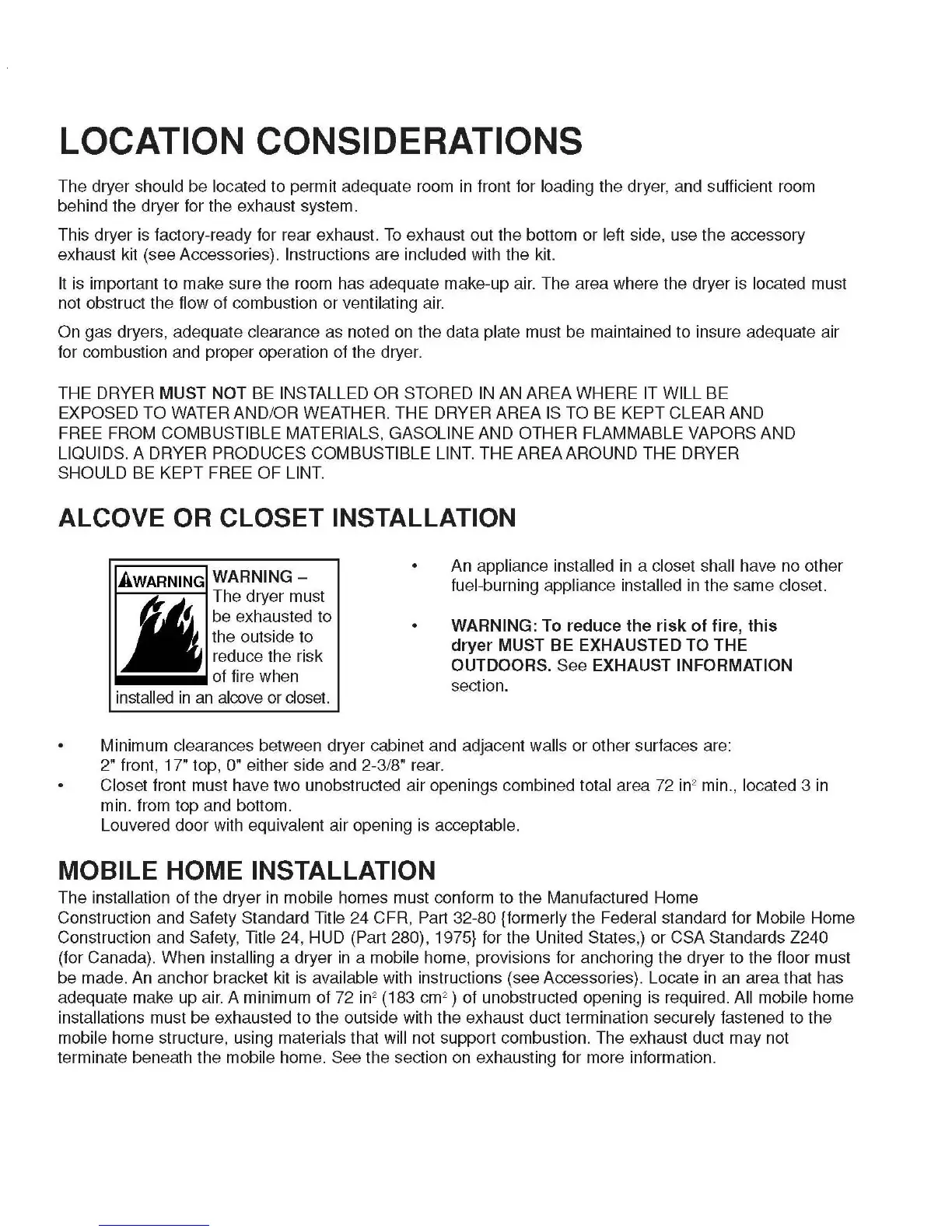 Maytag MDE9700A Series - Location and Exhausting Requirements